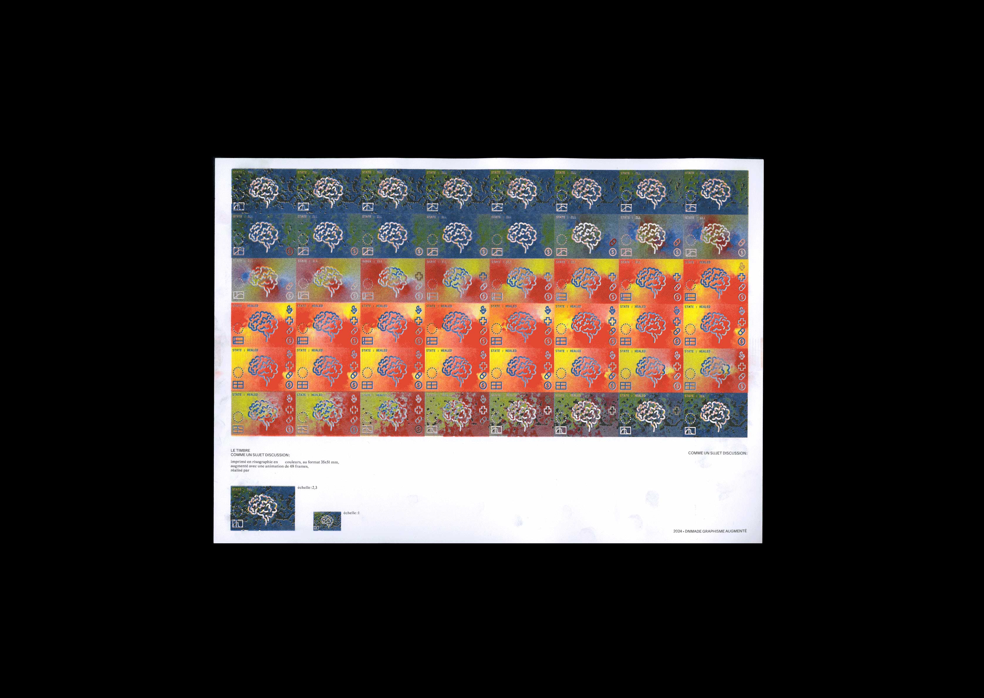 Dans le cadre d'une collaboration fictive entre La Poste et Libération, j'ai été chargé de concevoir un timbre animé établissant le lien entre mon article et le courrier. Mon article aborde le nouveau financement européen des soins de santé mentale, qui vise à placer la santé mentale sur un pied d'égalité avec la santé physique. Je souhaitais représenter cette évolution du point de vue d'un psychiatre observant la lente guérison des maladies mentales grâce à ce financement.